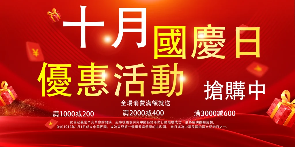 雙十國慶購物狂歡!全場限時折扣,優惠搶購不停!